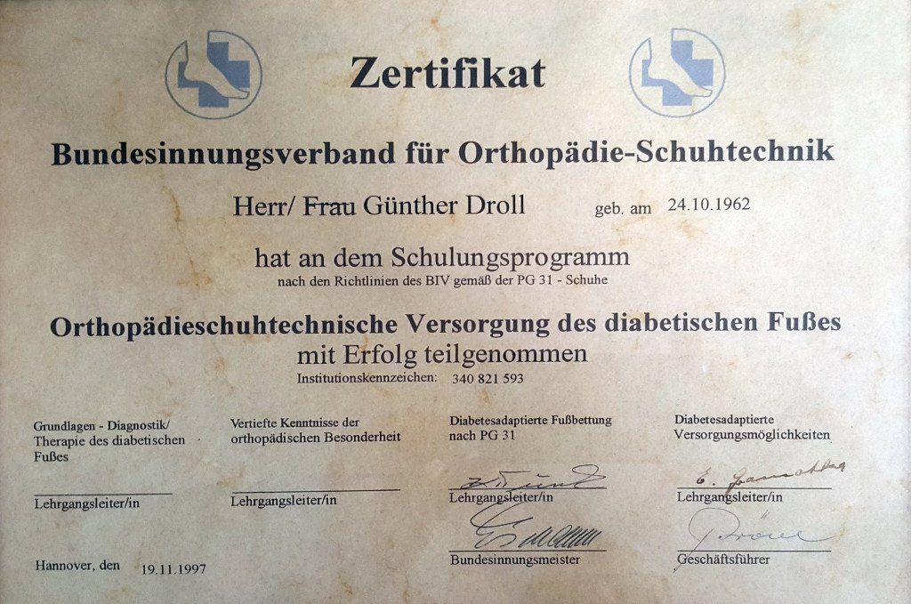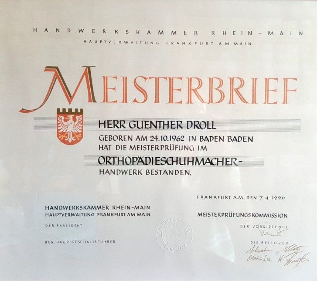 Günther Droll, der Sohn von Franz Droll, erlernte ebenfalls das Handwerk. Nach erfolgreich abgelegter Meisterprüfung 1990 gründete er seinen Betrieb für Orthopädieschuhtechnik & Schuhreparaturen