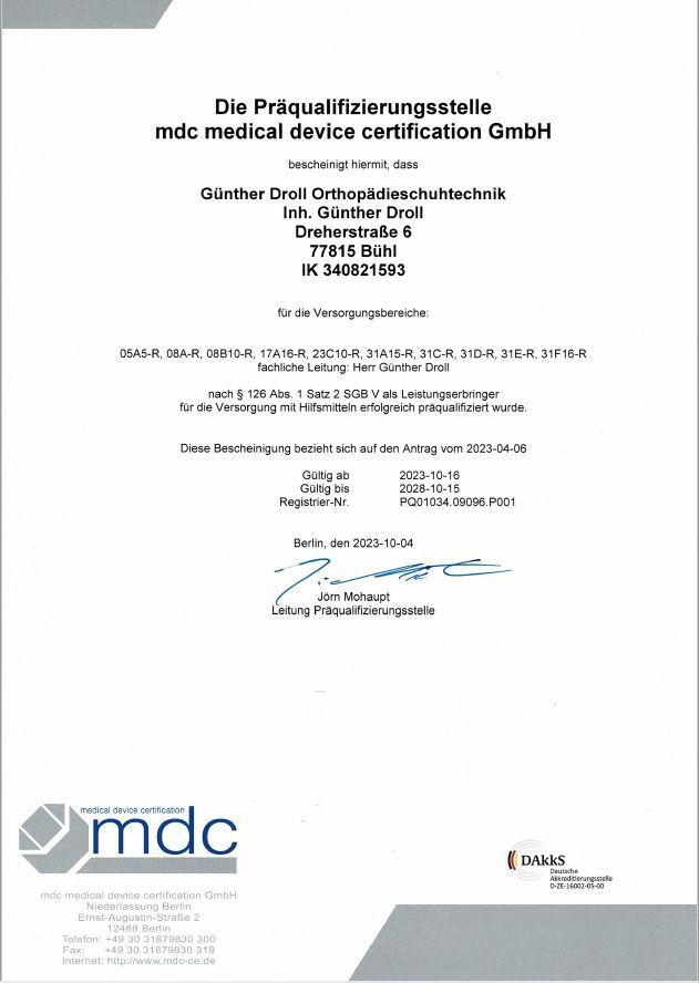 Abs. 1 S. 2 SGB V als Leistungserbringer für die Versorgung mit Hilfsmitteln präqualifiziert und erfülle damit die neuesten Anforderungen der gesetzlichen Krankenkassen.